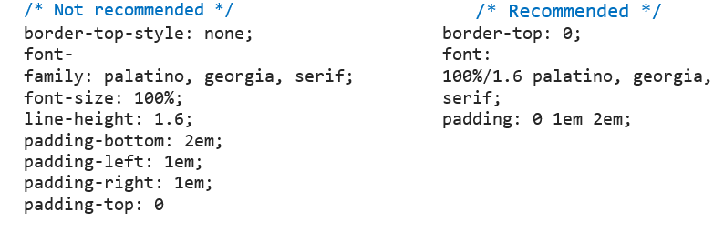 - Shorthand Properties: Use shorthand properties where possible. For example: