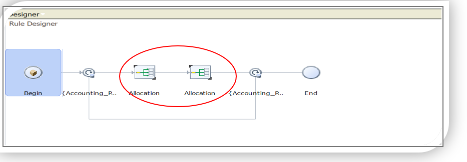 The rule designer allows you to navigate different allocation blocks and move around sections within the template. It also lets you add multiple components for a more complex allocation rule. This example shows two allocation components.