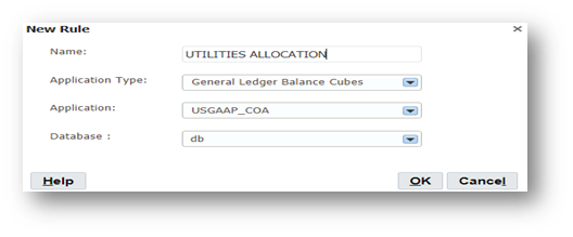 Enter the name of the allocation rule, and select the correct values as required. Typically, the Application Type and Database should have the values shown below.