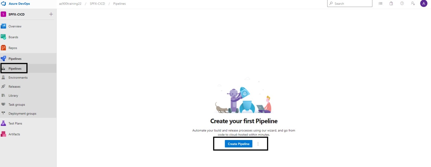 Go to azure DevOps pipelines and click on create Pipeline.