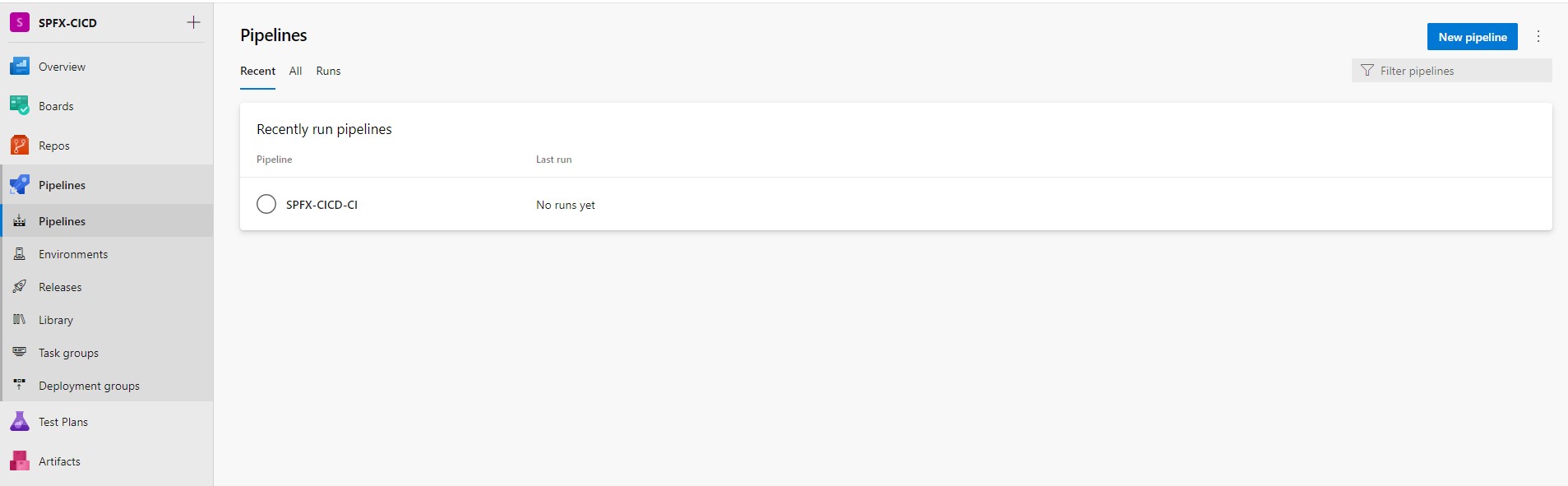 Once we done all these steps save and go to pipelines from left side navigation menu. We can see the newly created pipeline.