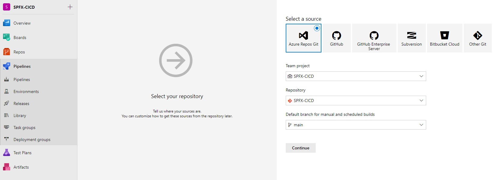 To setup Azure DevOps for Continuous Integration with a SharePoint Framework solution requires the fallowing steps.