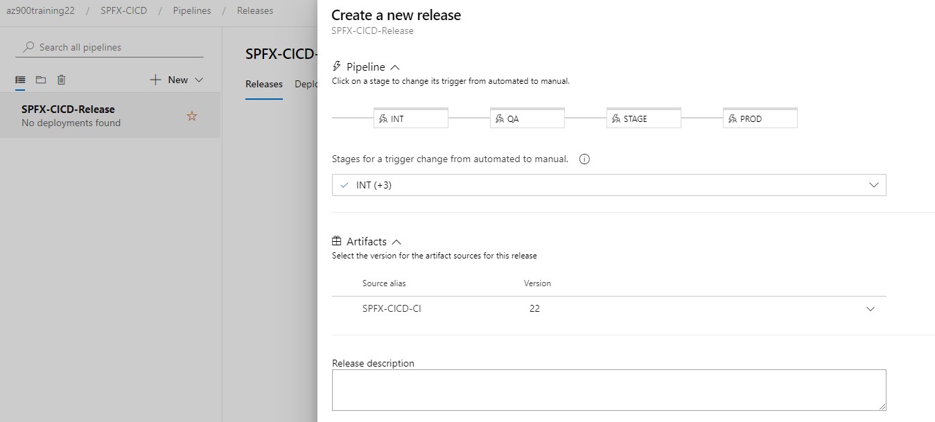 Go to Azure DevOps and open releases under the Pipelines. Then Create a new release pipeline.