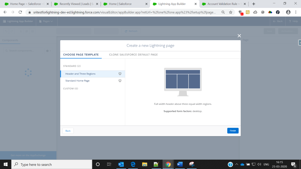 - Choose the page template or clone salesforce default page. So that the home page will appear in the selected format.