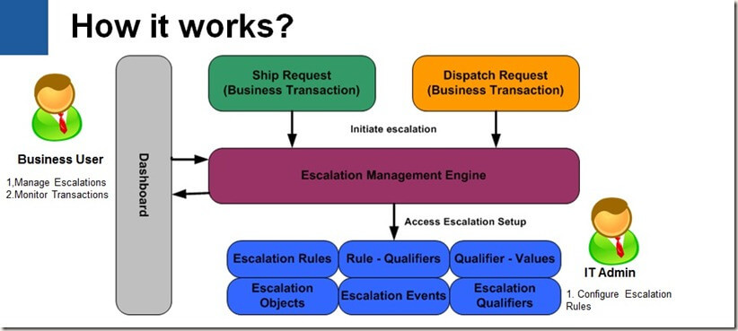 - Escalation Engine will receive and process Escalation Request by determining the appropriate Escalation Rule. Escalation Rule captures information about an entity that needs to be tracked by the system, time duration, and action required to be performed in case of escalation.