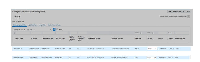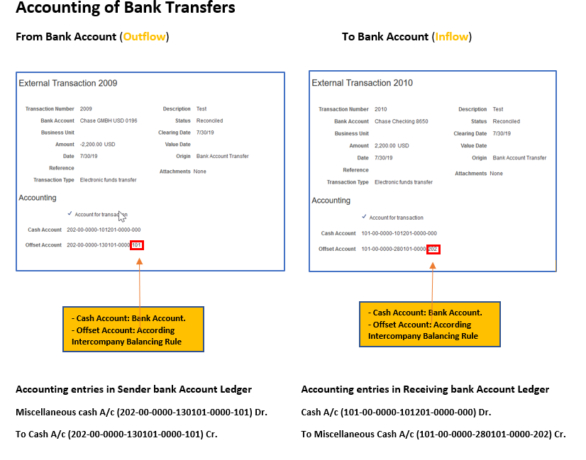 - The transactions leverage the balancing rules provided by Intercompany to generate the accounting distributions for both sender and receiver bank accounts