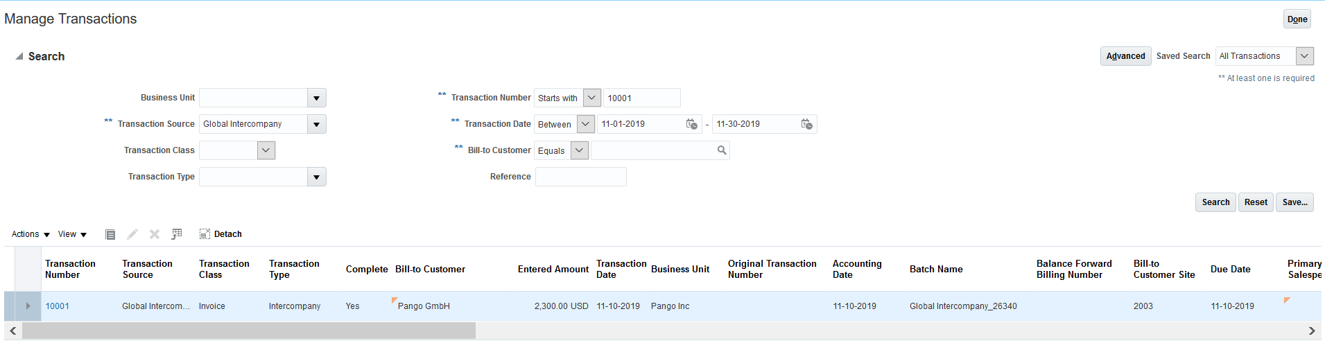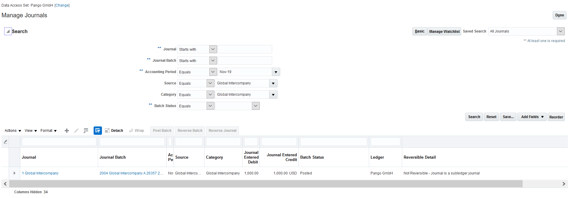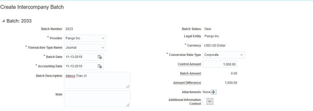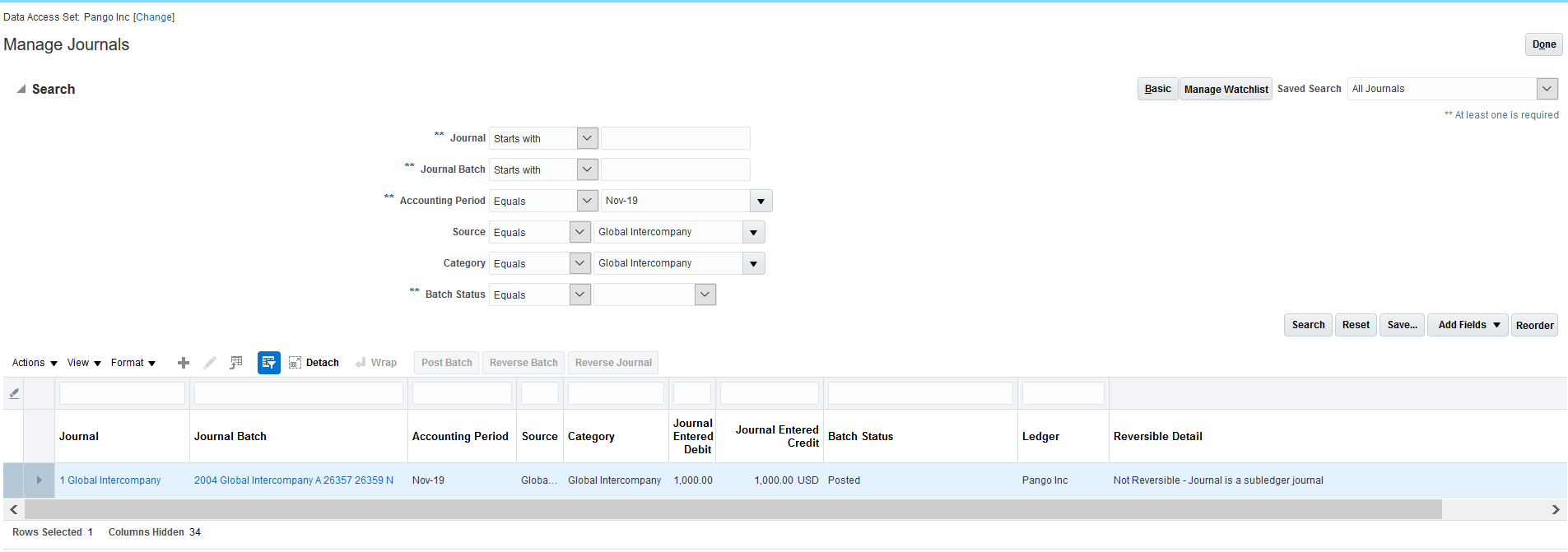 Note: Do not enter any parameter, this will transfer all intercompany transactions entered within various ledgers(companies).