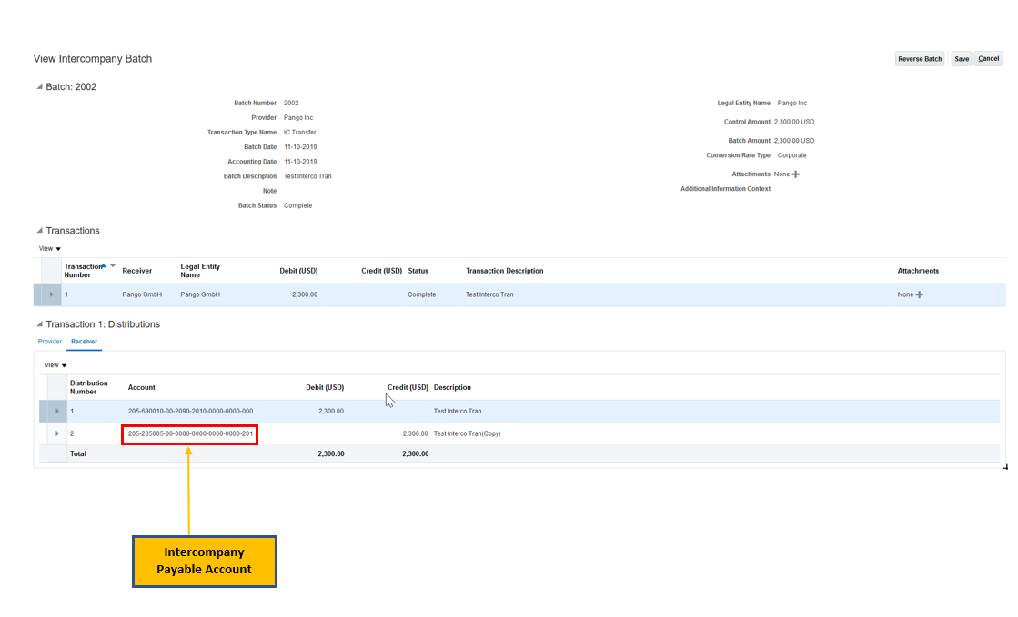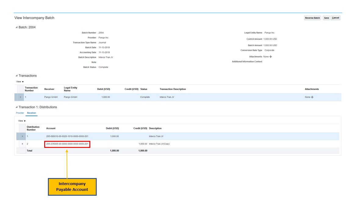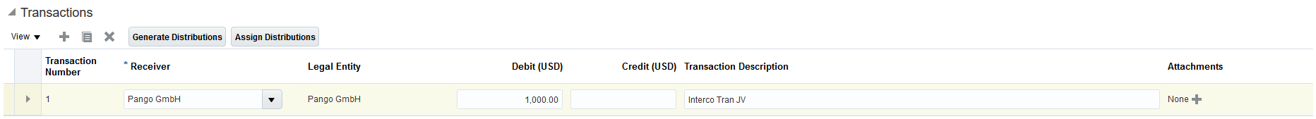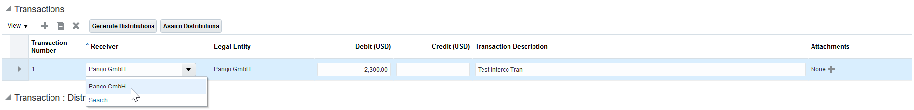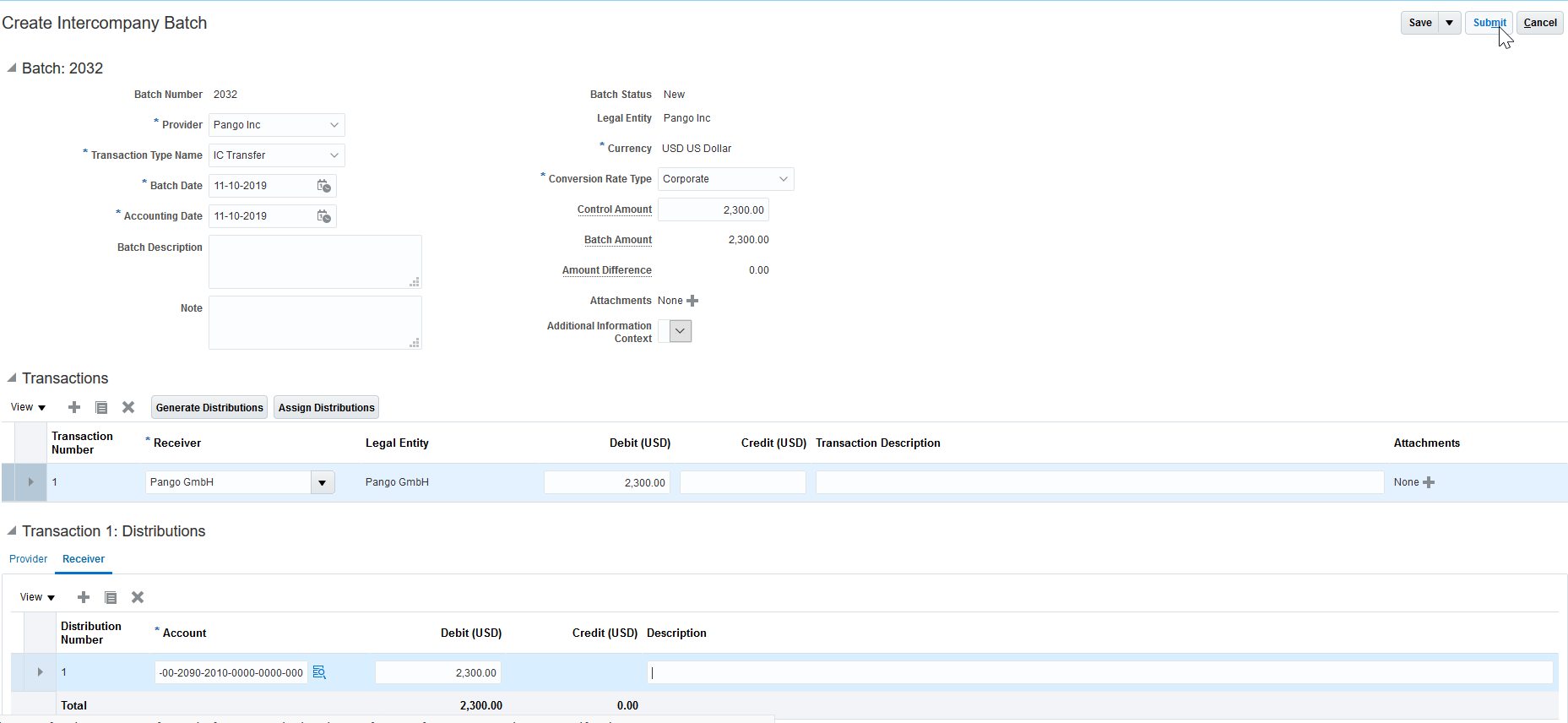 Enter Receiver: Pango GmbH (who is Receiving Intercompany transaction), Debit Amount