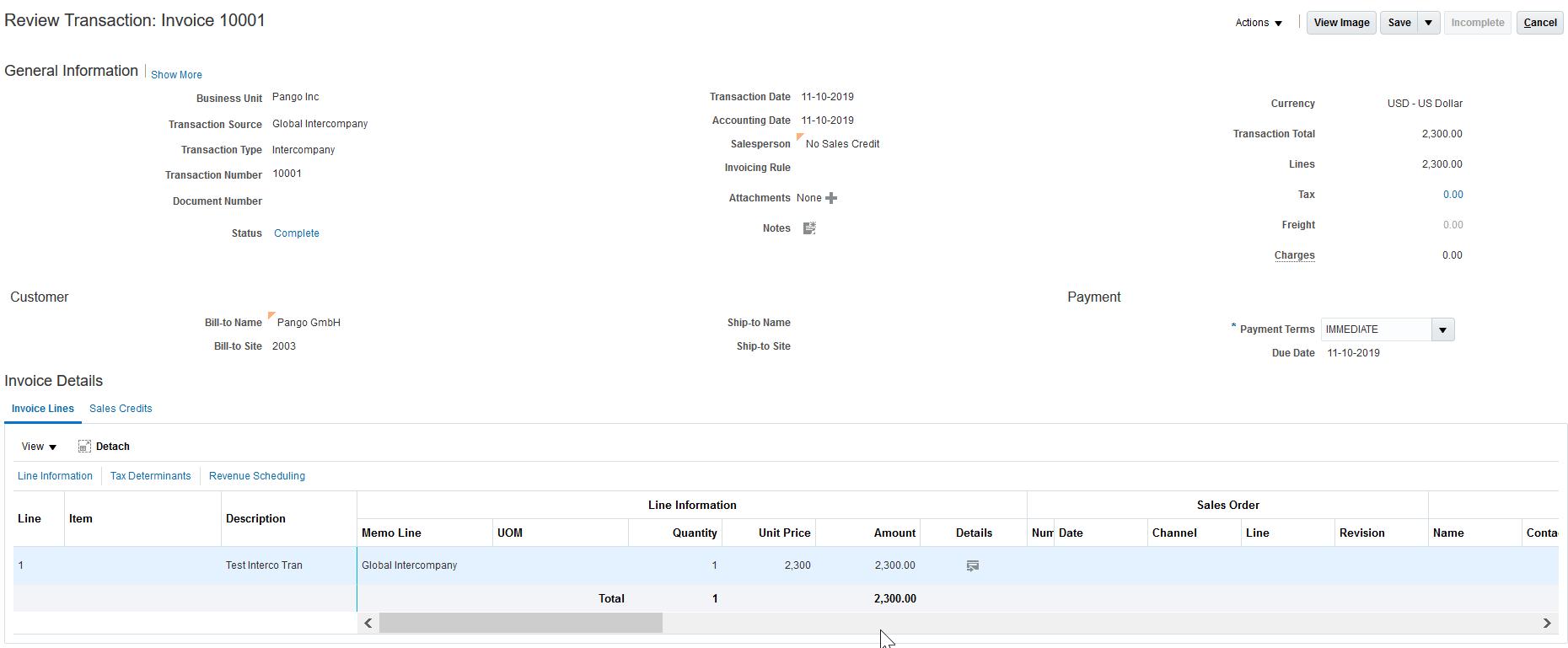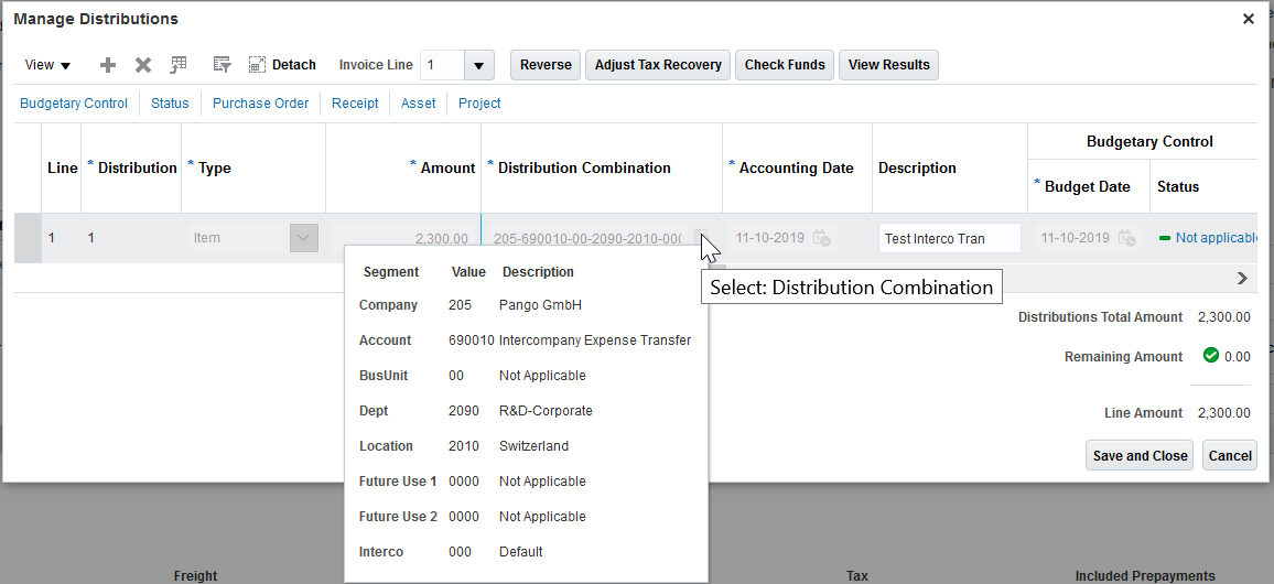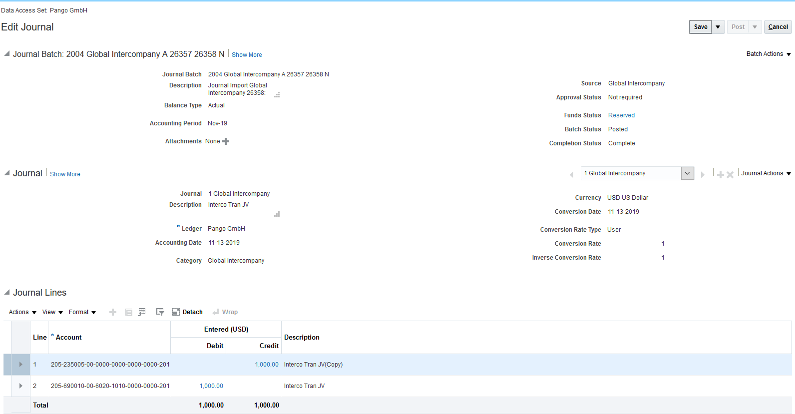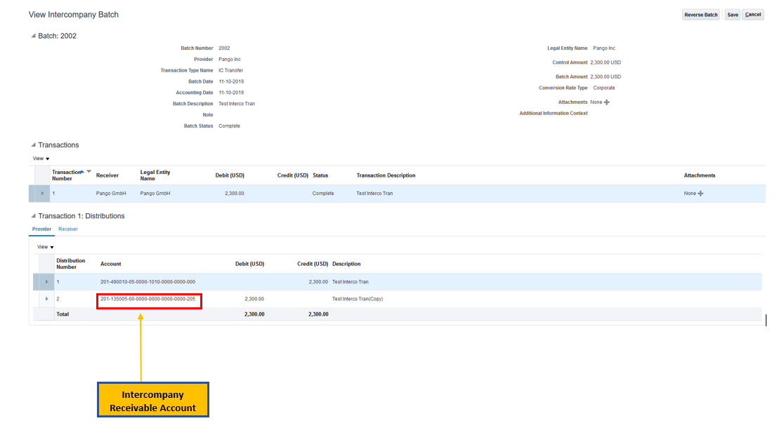 Enter Receiver: Pango GmbH (who is Receiving Intercompany transaction), Debit Amount