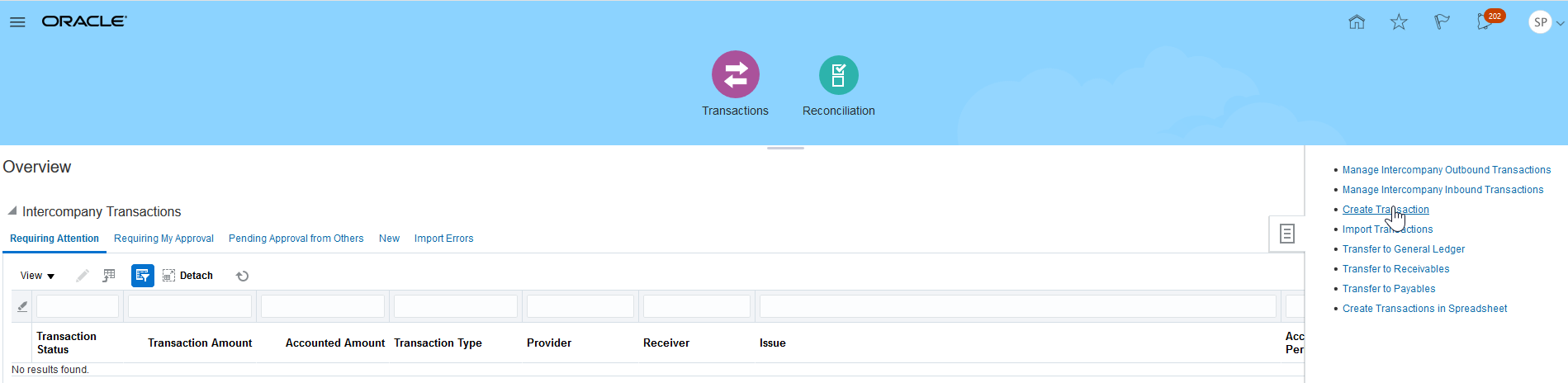 Select Manage Intercompany Outbound Transactions task as an initiator of an intercompany transaction.