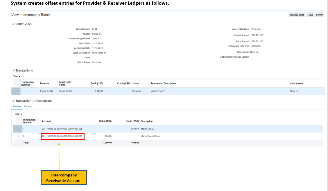 System creates offset entries for Provider & Receiver Ledgers as follows.