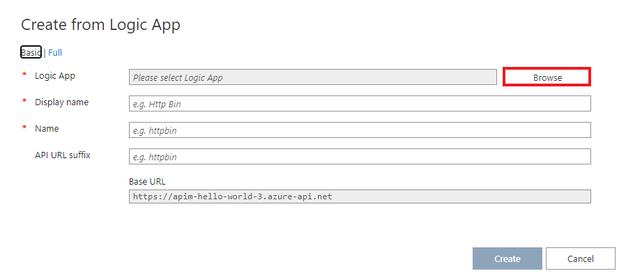 - Press Browse to see the list of Logic Apps with HTTP triggers in your subscription.