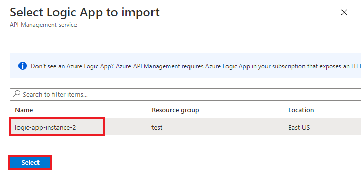 - Logic apps without an HTTP trigger will not appear in the list.