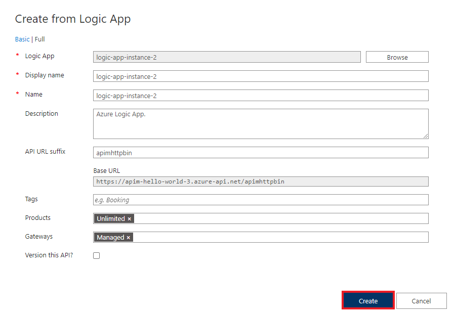 - Create an Azure API Management instance if it does not exist in our subscription.