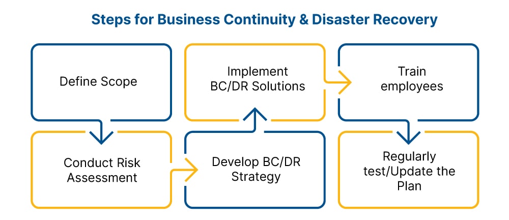 - Train employees on disaster recovery and continuity planning to ensure that they understand the processes and their roles during a disaster.