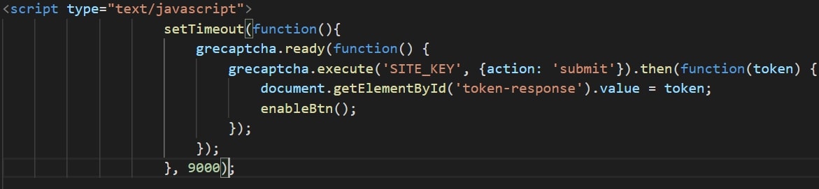 - API link inclusion We need to include the https://www.google.com/recaptcha/api.js?render={SITE_KEY}at top of the page on which captcha is getting implemented.