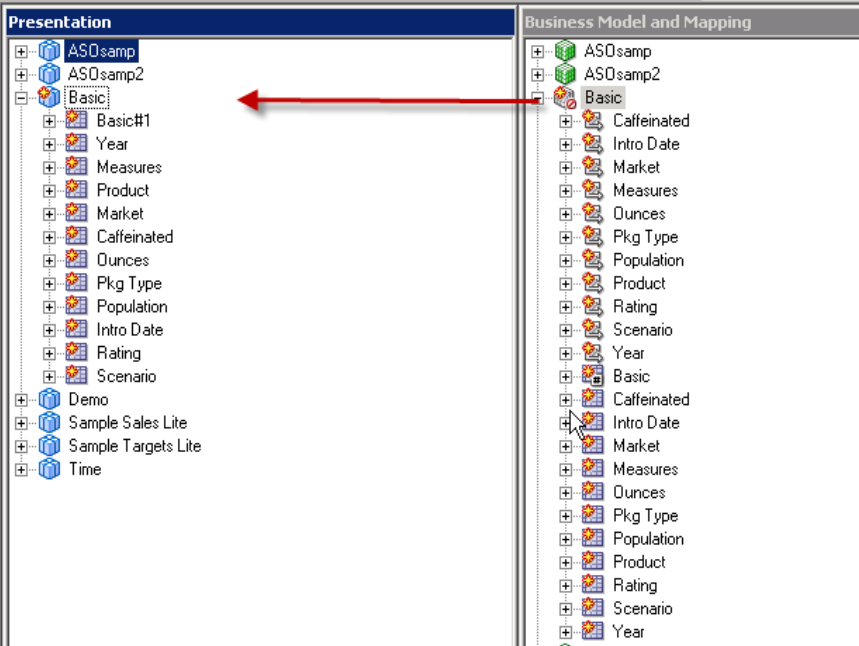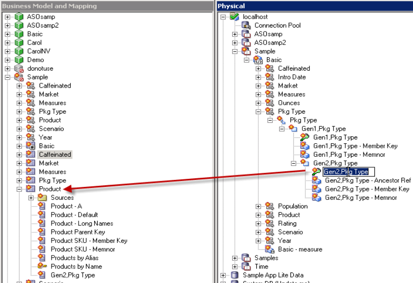 - Once imported, drag the application to the Business Model and Mapping (BMM) Layer.