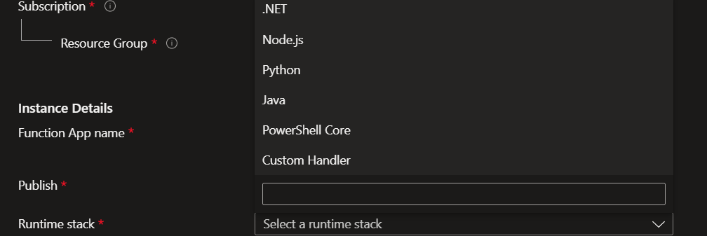 While creating a function app, we must choose a runtime stack for the functions we need to develop. We must also select the operating system and pricing plan while creating the function app.