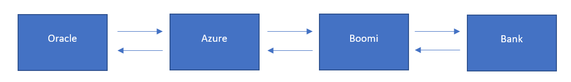 Inbound Integration: For inbound files from Bank, Boomi uses Azure Storage as staging, and a scheduled process at Oracle picks from the staging area.