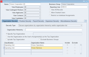 Note – From the above screen shots we can conclude that user with purchasing responsibility will be able to access data from two Operating Units Vision Operations and Vision Services