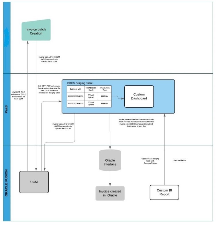 - The ESS job to import invoices will be called from PaaS to create AR invoices.
