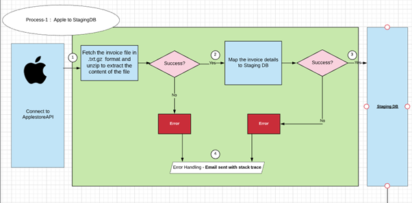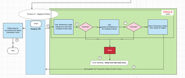 - Once invoices are created /processed , staging DB is updated with the invoice number / error status.