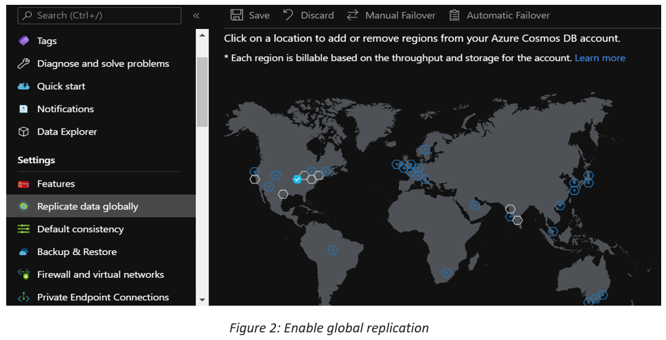 We can select the region where we want to replicate the data globally. We must click to select the region on the map. We can also prioritize the regions where it should failover in case of a disaster.