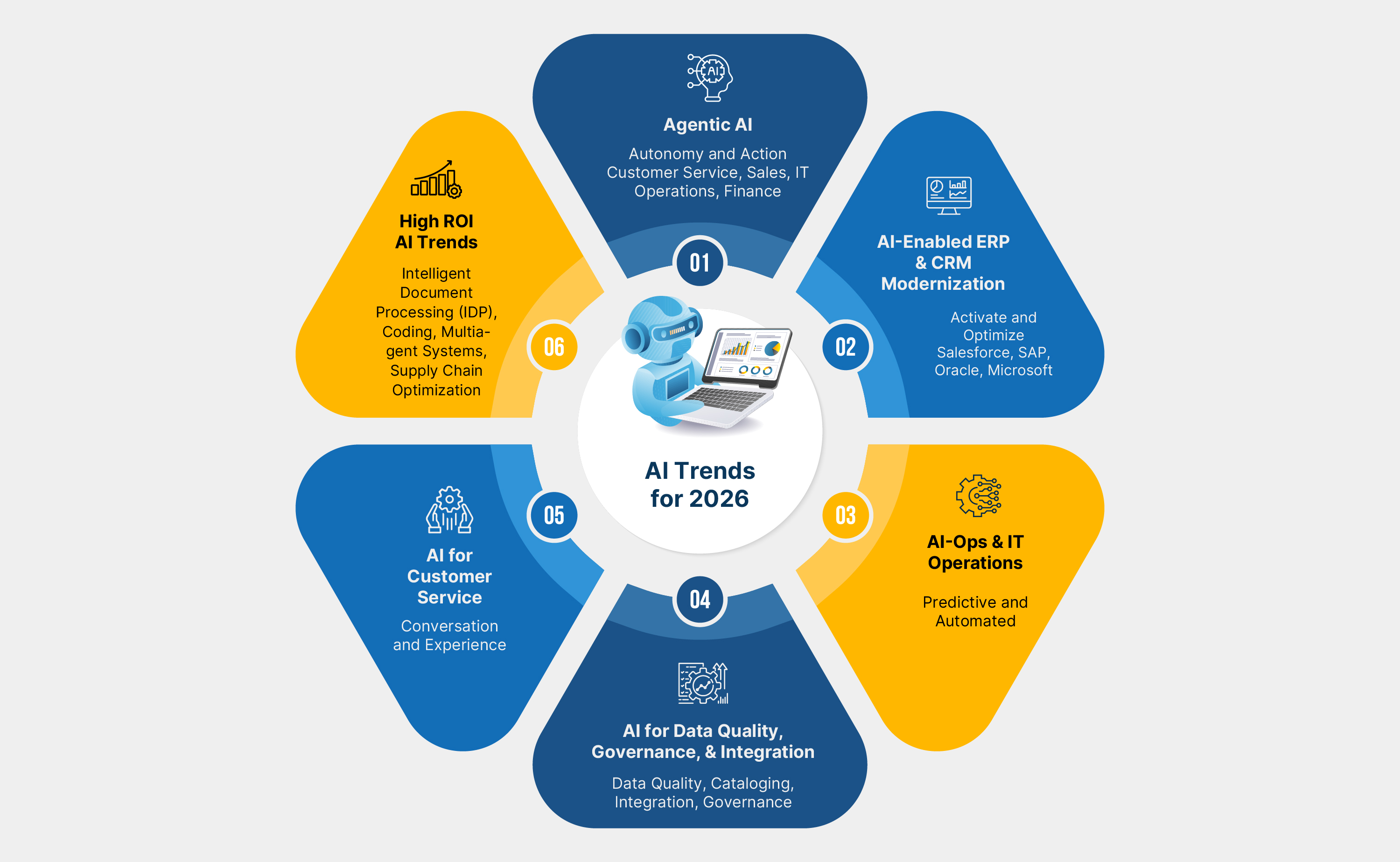 Not all AI investments deliver equal returns. Based on enterprise adoption data, market research, and real-world deployment outcomes, these trends represent the highest-ROI opportunities for CIOs in 2026.