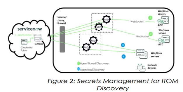 As displayed in figure 2, different Windows and Linux servers associated with the MID server and a few MID server specialists empower the disclosure cycle to refresh the CMDB