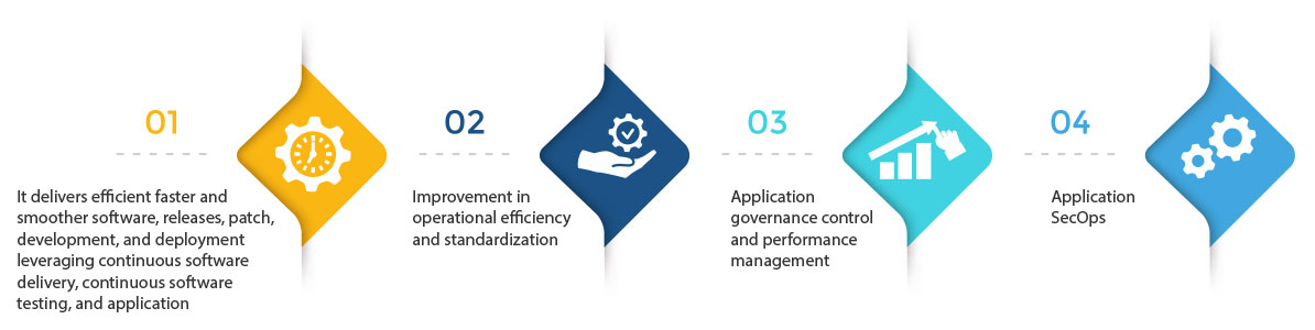 - It delivers efficient, faster, and smoother software releases, patch, development, and deployment leveraging continuous software delivery, continuous software testing, and application monitoring.