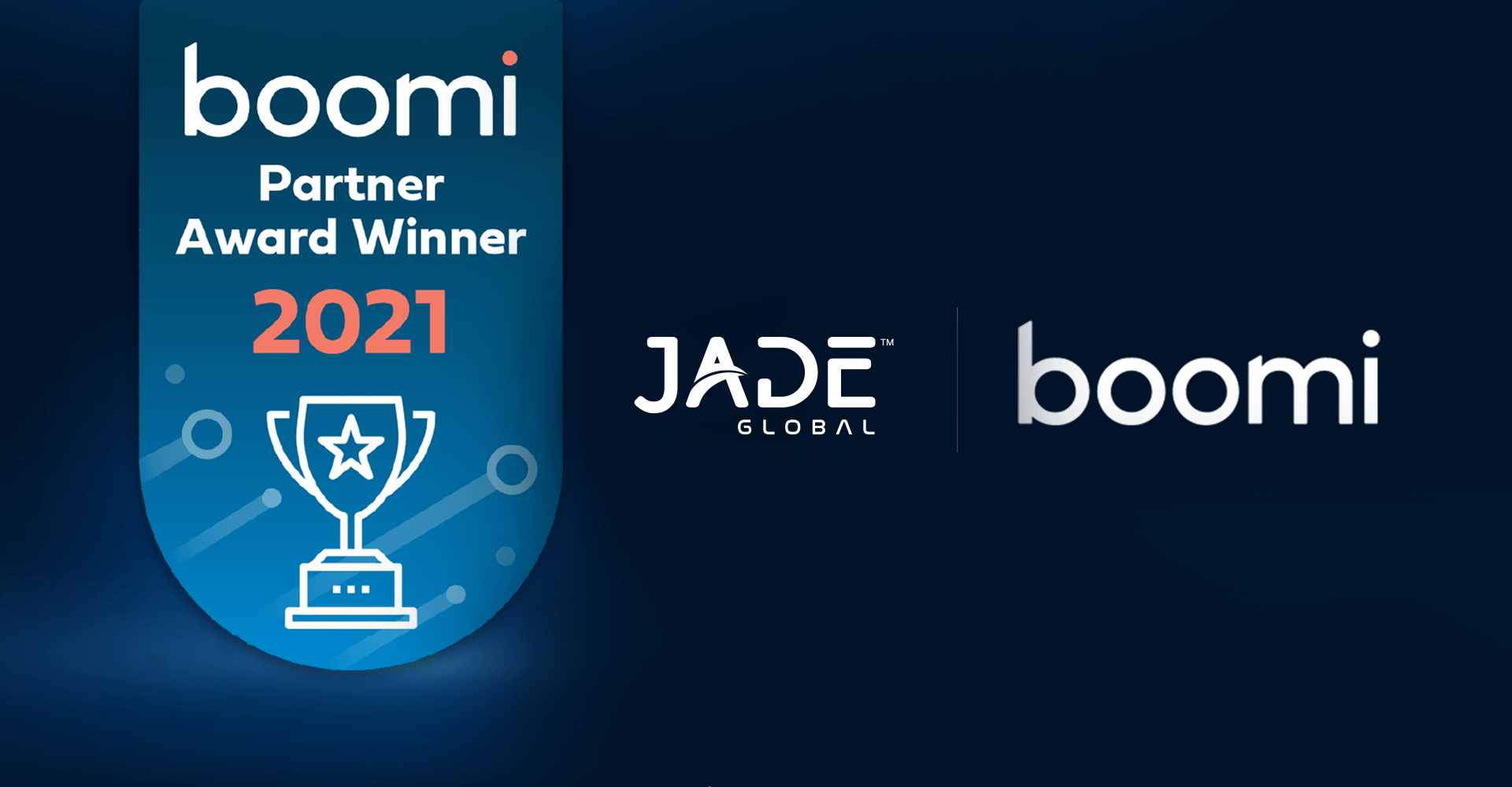 Partner award winners were unveiled during the virtual Boomi Global Partner Summit, which was held December 9, 2021, recognizing partners that successfully utilize the breadth of the Boomi AtomSphere™ Platform to enable Integrated Experiences, creativity, and innovation, scope and complexity, and environmental or social impact. Jade Global was recognized for its expertise across the entire Boomi platform, its extensive experience spanning major ecosystems and as a go-to partner, and in supporting Boomi’s OEM/ISV and direct customers.