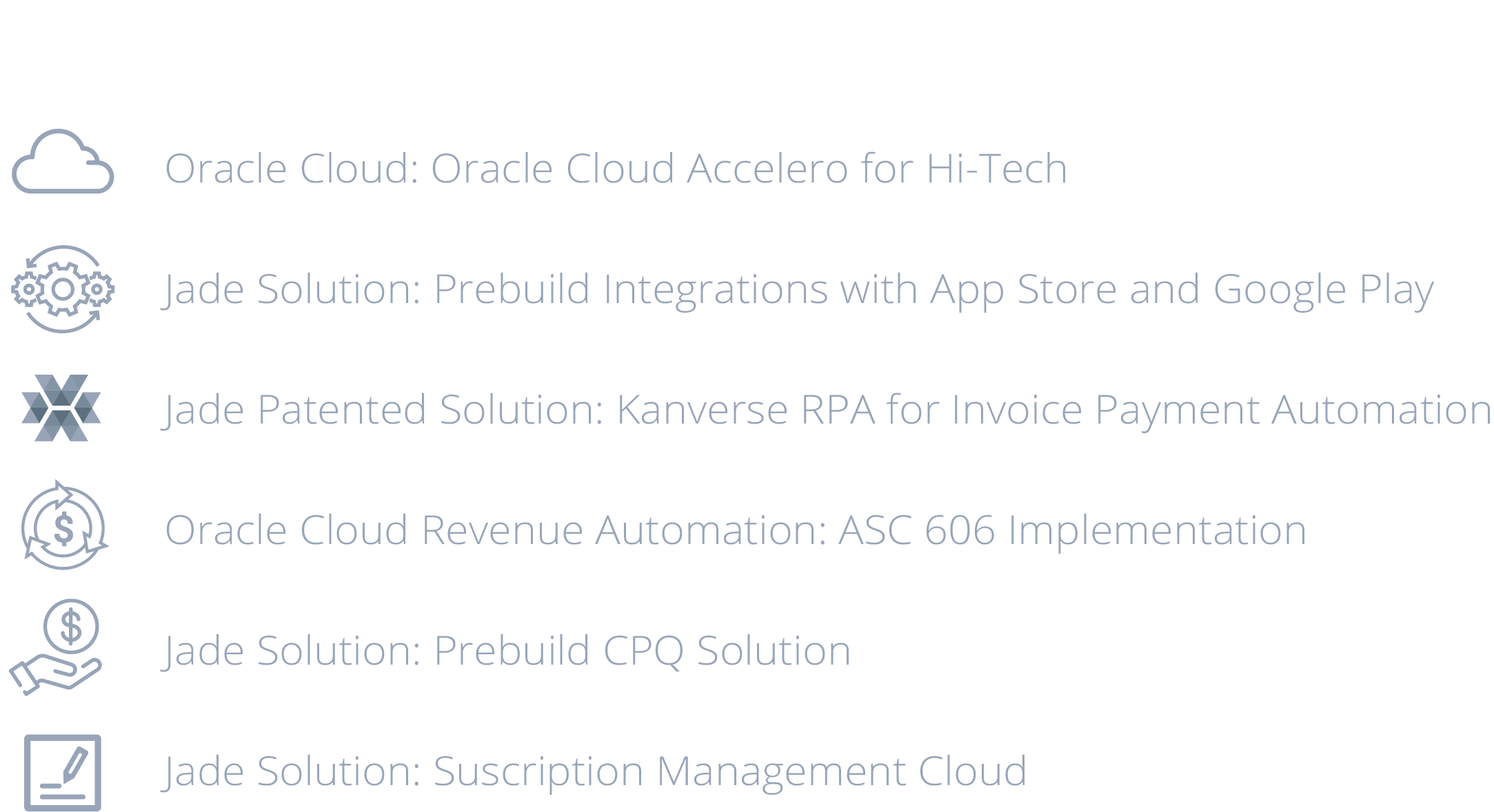 Jade Global’s Accelero Solution for Software Industry consists of our Prebuilt Oracle Cloud ERP and CRM environment to enable up to 40% faster implementation cycle. The Prebuilt solution includes Preconfigured Business Processes and Metadata.