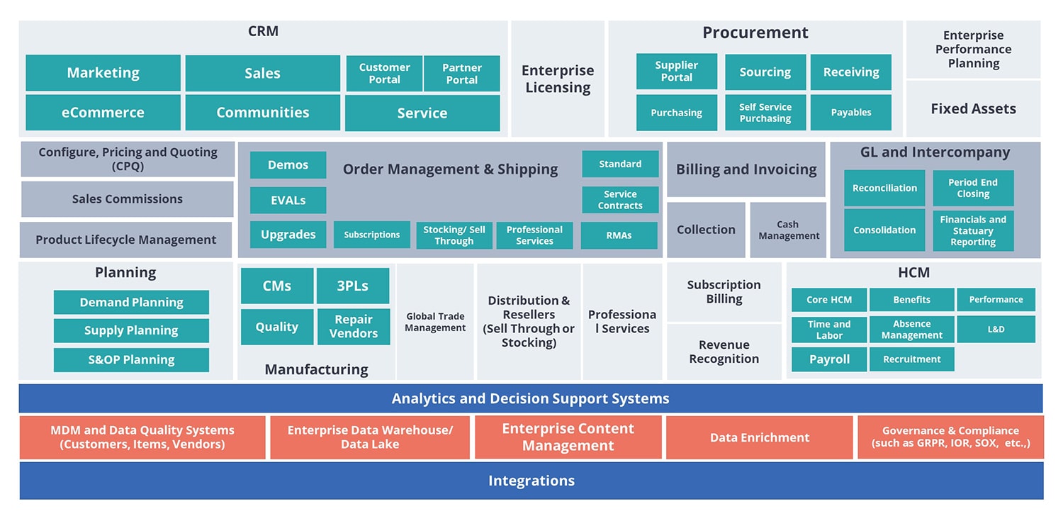 - Integrated Application Landscape – Salesforce, ERP, BI, PLM, EPM, Custom