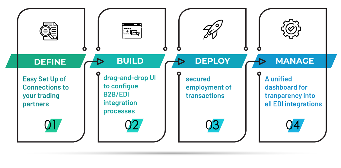 Make your business agile and scalable for high EDI volumes with our expertise in EDI integration across your range of existing business systems and ERPs. Our specialized services enable you to have seamless collaboration with your trading partners and experience a smoother B2B data flow.