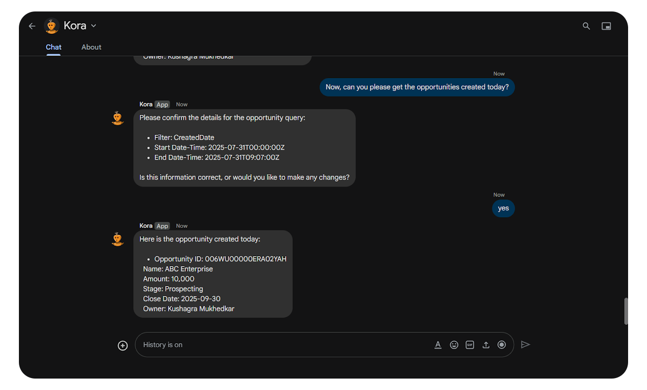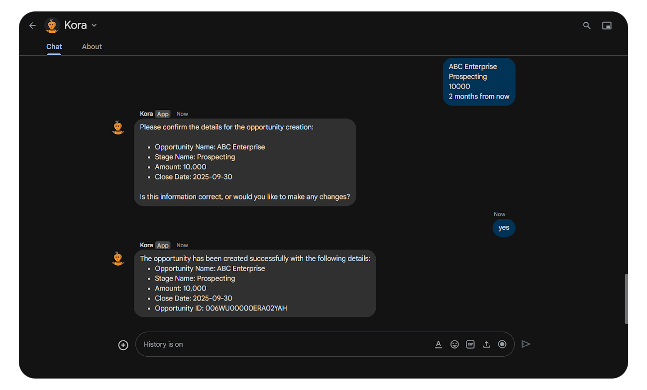 Update records in Salesforce, ServiceNow, Oracle, or any enterprise system via chat.