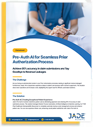 Jade's Pre-Auth AI solution can help you bridge the gap between provider EHR/EMR and Payer’s PA needs. The process fully automates your revenue cycle management, boosting efficiency, cutting losses, and enhancing patient experience.