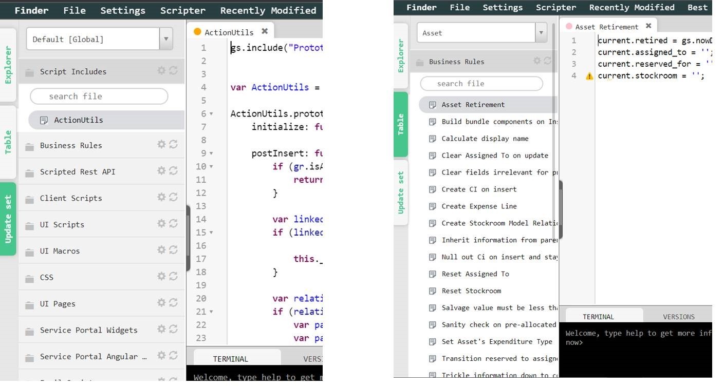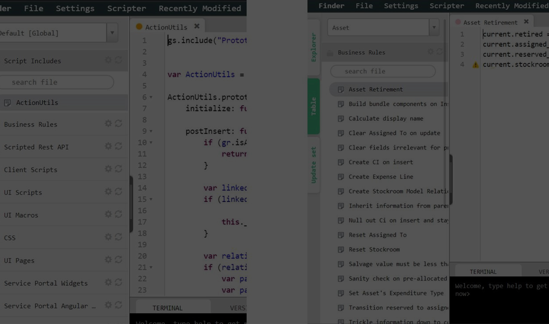 Syfer is a free IDE for ServiceNow developers with desktop-like features. It provides all the advanced IDE features such as auto-complete, jump-to-definition, on-the-fly error detection, context awareness, etc. It also provides a centralized ServiceNow IDE-like interface where a developer can manage, edit, and create multiple application files in a single view. The best thing is it works for global application scope as well.